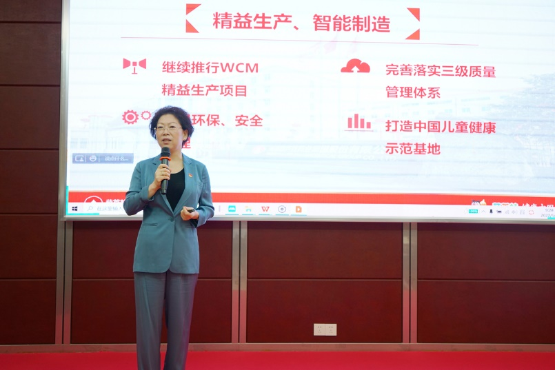 刘景萍董事长引用席大大总书记在2022年博鳌亚洲论坛上的重要讲话勉励全体与会人员,在海南自贸港建设的机遇期,认真学习贯彻落实省第八次党代会精神,坚持党建引领企业发展,将AG庄闲药业集团打造成中国儿童健康领军企业。